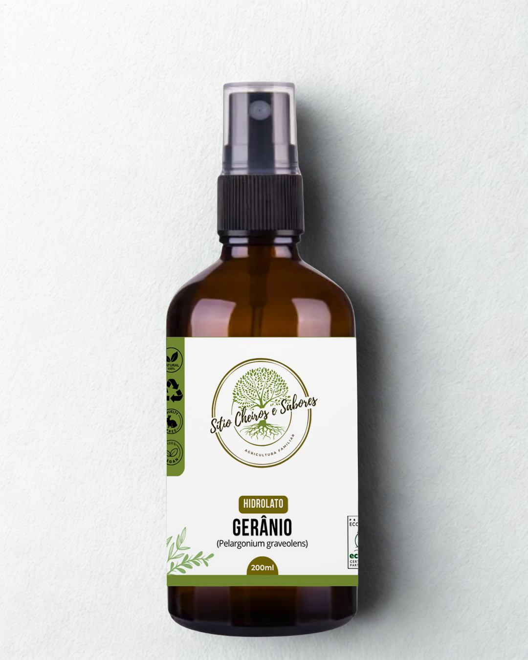 Colhido com respeito à natureza e destilado de forma lenta e cuidadosa, o Hidrolato de Gerânio do Sítio Cheiros e Sabores traz a essência mais pura da planta para seu ritual diário de bem-estar.