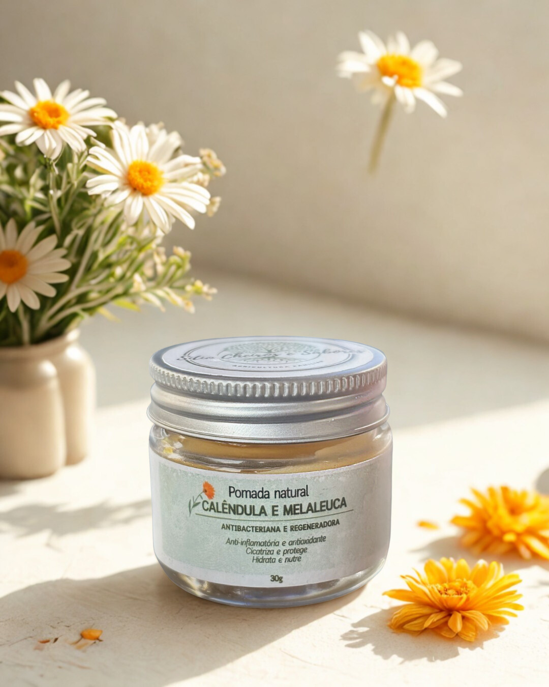 Pomada Natural Calêndula e Melaleuca 30g – Sítio Cheiros e Sabores